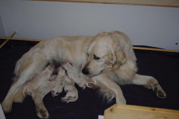 April kümmert sich rührend um ihre Welpen, sie ist eine ganz tolle Mama.