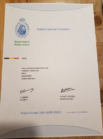 Auf der Europasieger Ausstellung belegte unsere Bailey (Never Ending Emotion Bailey) den 1. Platz mit Anw. Dt. Vet. Ch. VDH CAC-V Bester Veteran und erhielt den Titel -VDH-Europa-Veteranensieger- somit hat Bailey ihren letzten Punkt für den VDH Veteranen Champion erhalten. Unsere Dolly (Never Ending Emotion Dolce Vita) erhielt in der Veteranen Klasse eine schöne Bewertung. April (True as a Soul April) belegte den 1. Platz in der Champion Klasse mit Anw. Dt. Ch. VDH CAC.